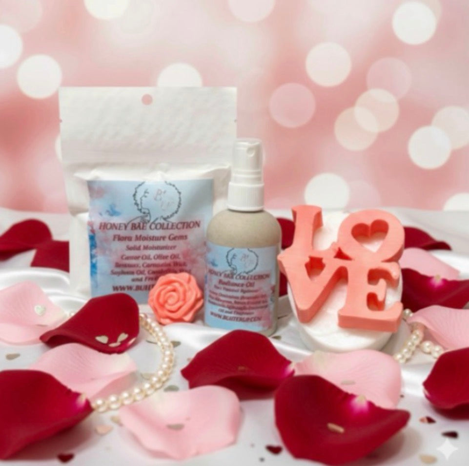The Honey Bae Collection is a luxurious Valentine’s Day skincare set for women designed to deliver soft, glowing, touchable skin. This trio features Flora Moisture Gem, a solid moisturizer that melts into the skin for long‑lasting hydration, Radiance Oil, a plant‑based body oil that locks in moisture and enhances natural glow, and the Amour Artisan Bar, a creamy goat milk soap bar embossed with “LOVE” for a gentle, moisturizing cleanse. Thoughtfully packaged in eco friendly, sustainable materials, this set lets you indulge in self care while being kind to the planet. Together they create a romantic self care routine perfect for pampering, spa‑night gifts, and anyone who loves natural skincare, goat milk soap, and clean beauty body care.